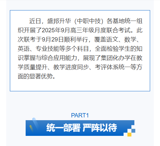 盛邦升华(中职中技)2025年9月高三联考顺利举行,集团化办学优势凸显